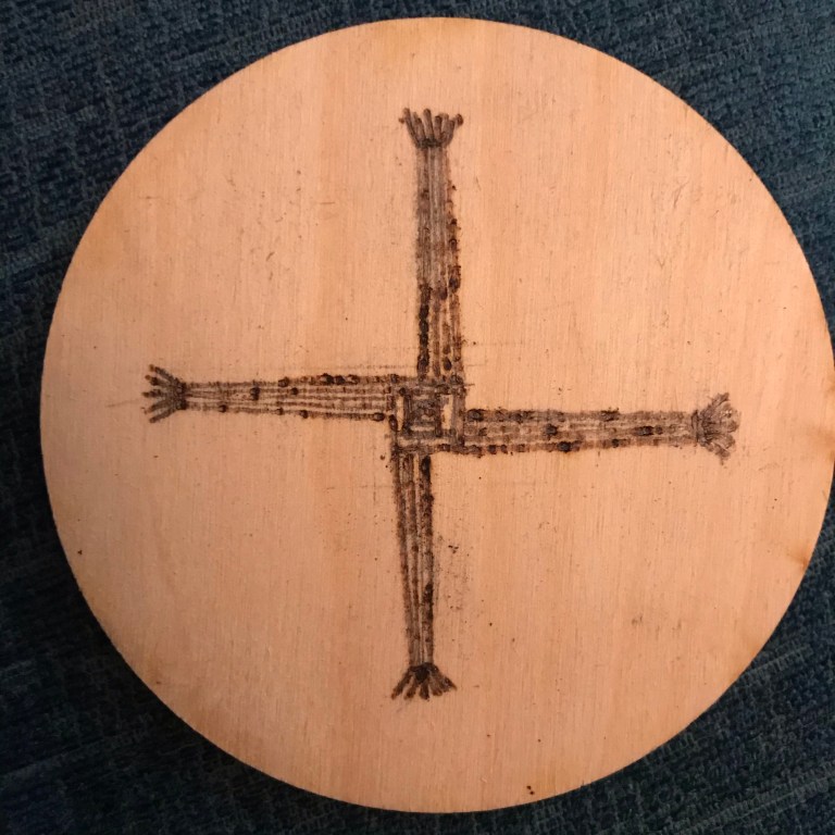 St Brigid is very clearly an old spiritual presence in Ireland, far older than the arrival of Christianity. Her cross is a distinctive and beautiful thing, made with rushes each year in many Irish households. Is this form of cross a pre-Christian symbol? I don’t know, but it is lovely.