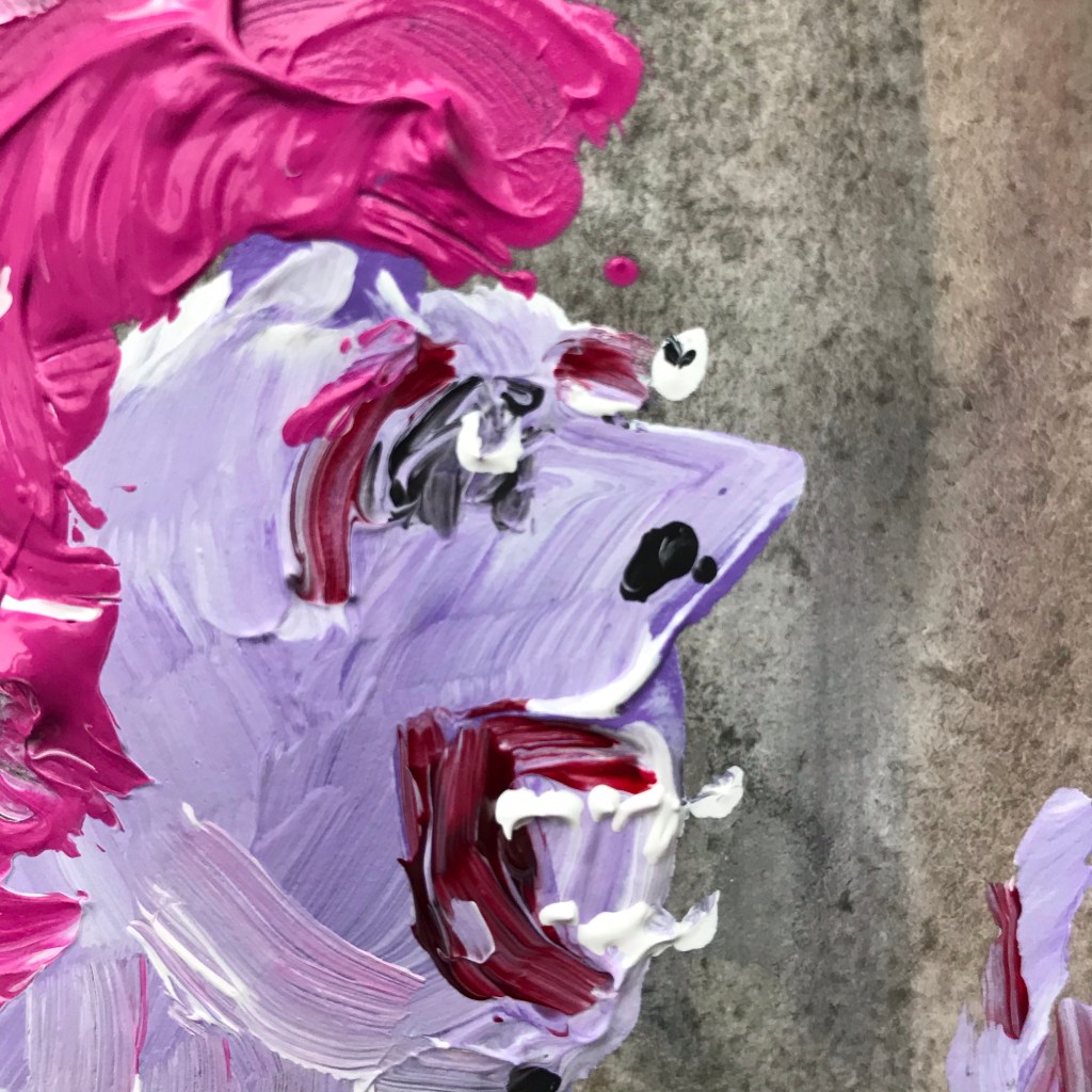 I felt like slapping some paint around and came up with this unpleasant little fellow. While he may not be my finest work, he does seem to be animated by some sort of lively spirit.