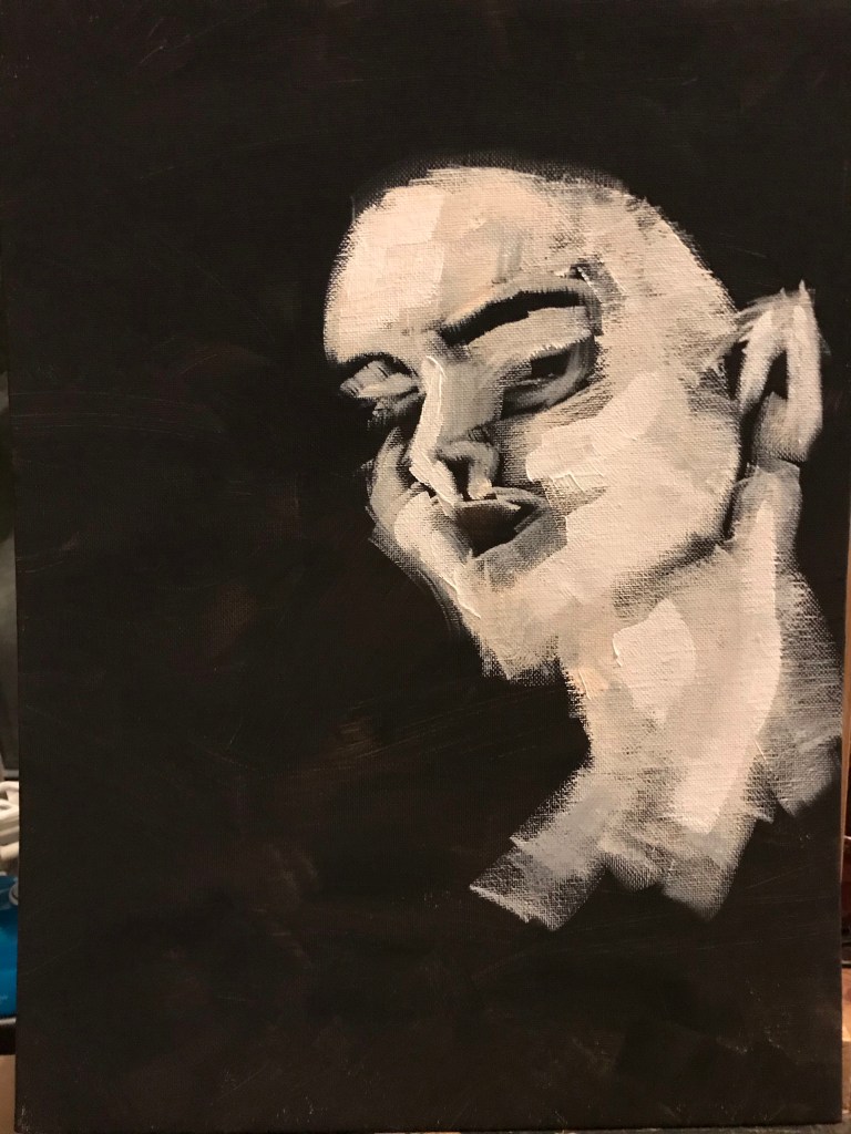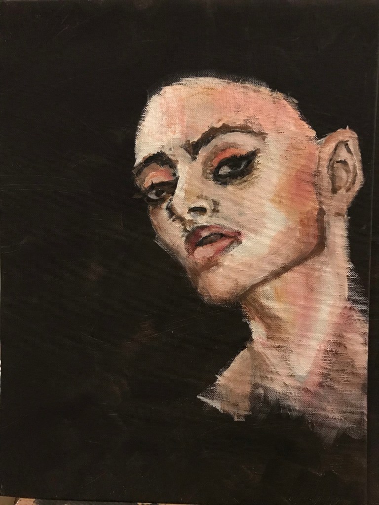 Another recent painting, originally intended to portray the Greek goddess and sorceress but after getting this far I didn’t have the confidence to paint any more so will leave her as she is, as another exercise in developing my painting skills.