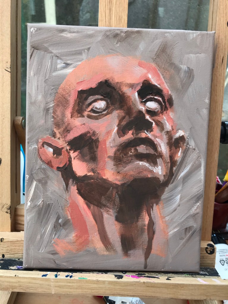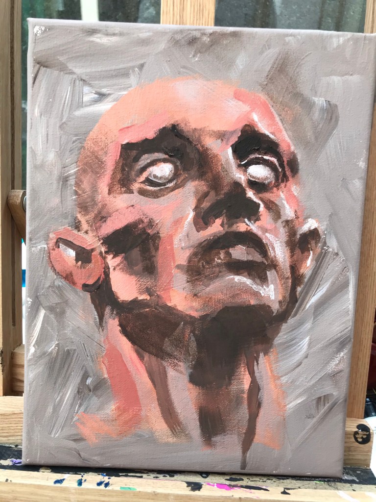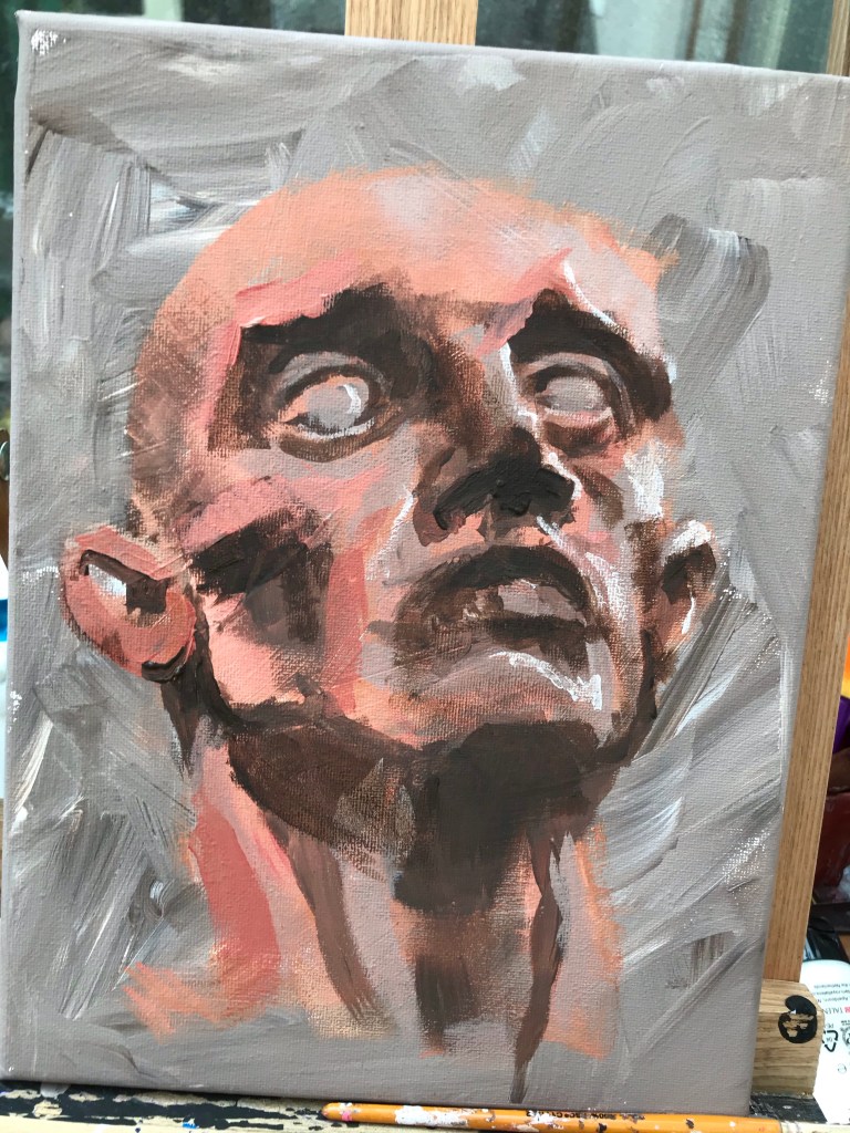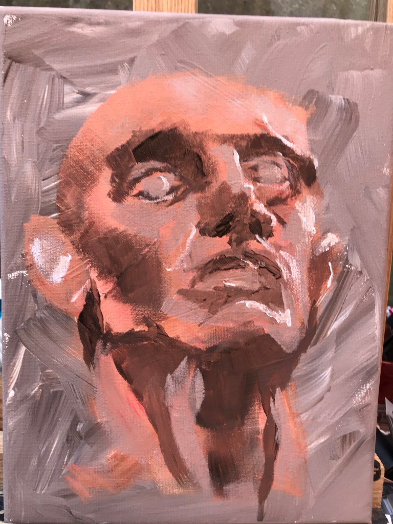 Here’s my latest work in progress so far. I’m really trying to push my skills around shapes and angles and light and shadow. I’m somehow not capturing the correct angle of the head. It’s based on a photo of a clay sculpture of a head.