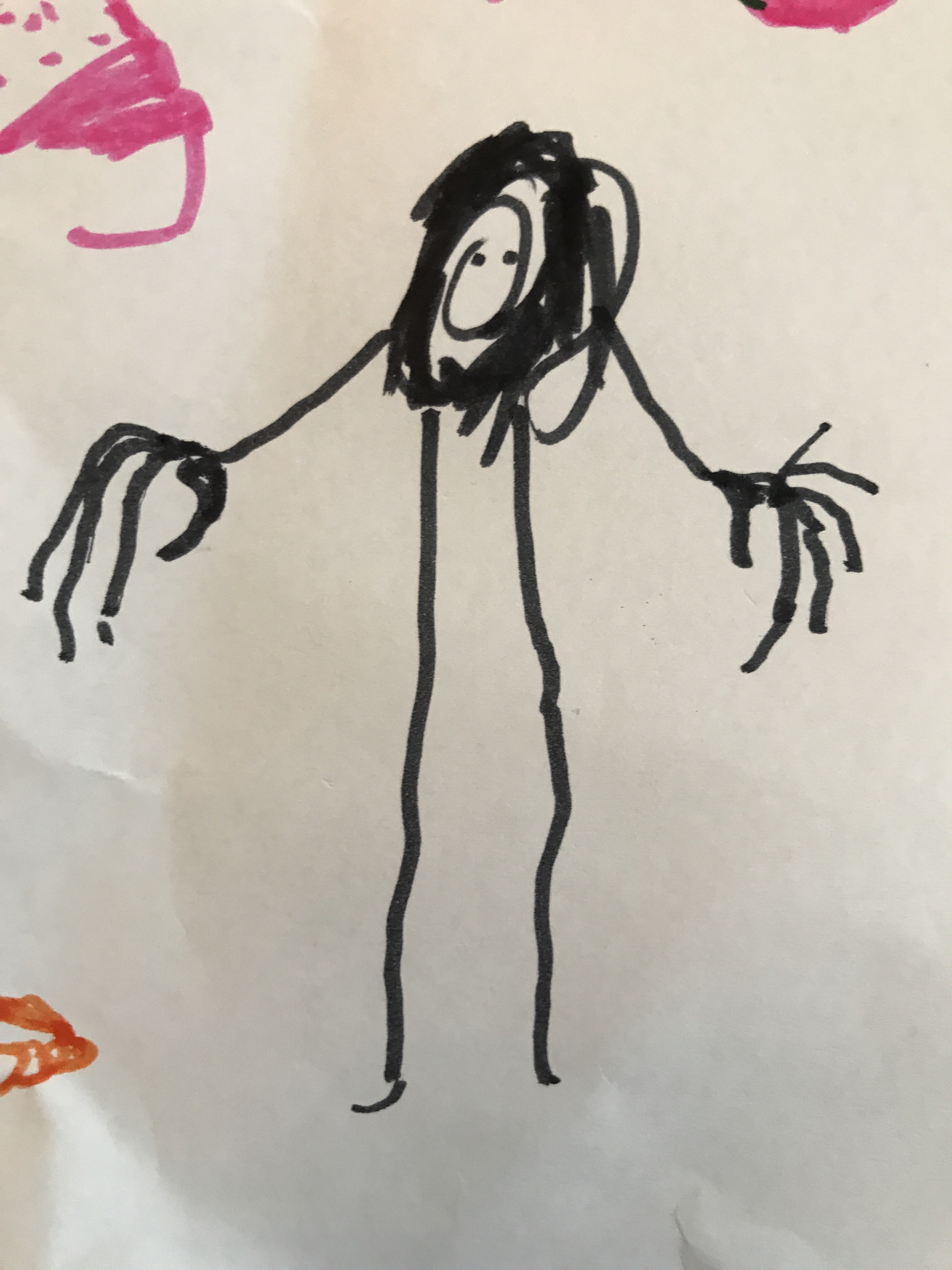 This is a tribute to Slenderman that I drew in felt tip pen in the style of my daughter Erin.