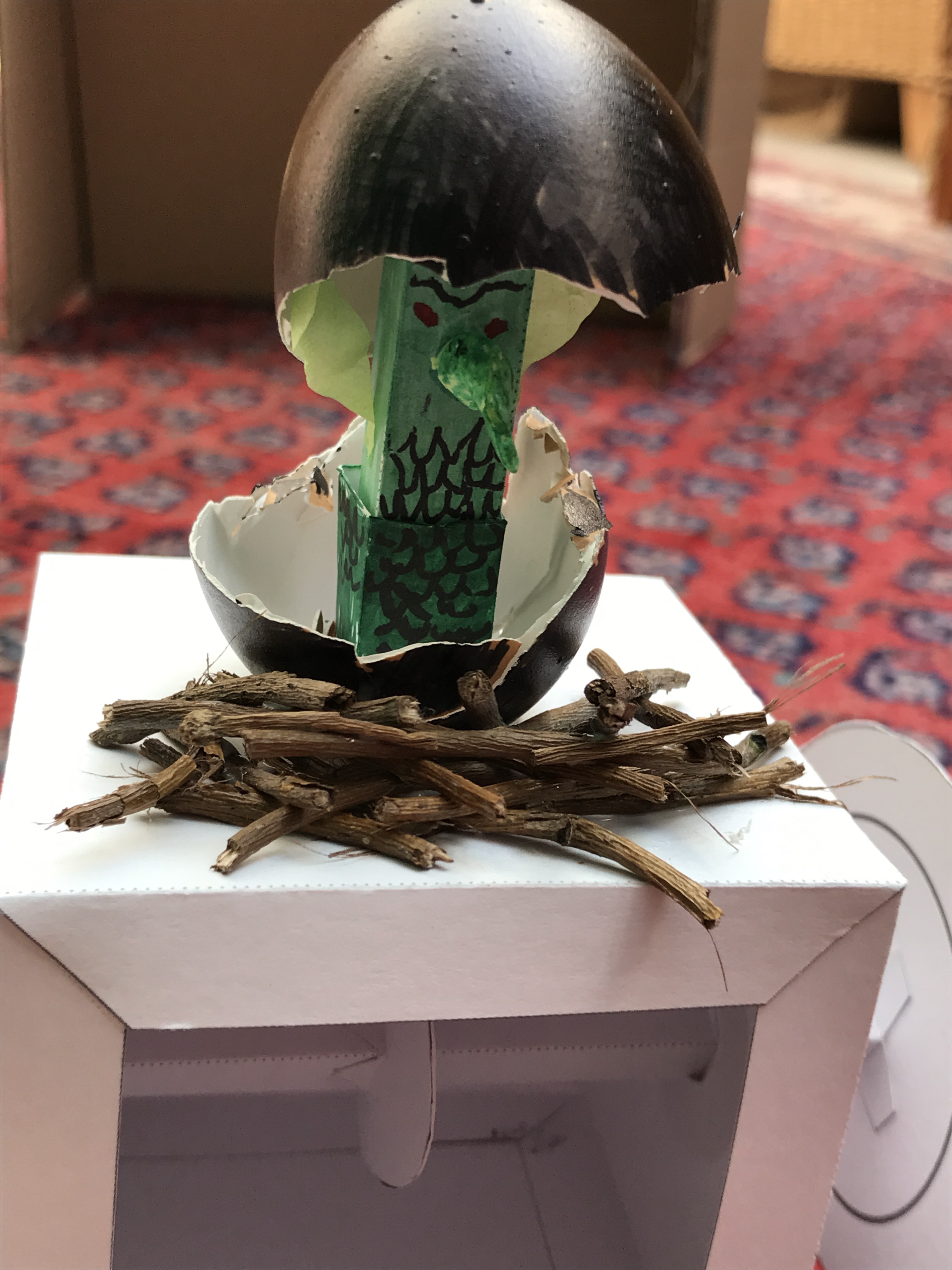 Just a little adaptation of one of the karakuri models, which I have made into a little hatchling dragon thing. Made in snatches of two minutes here and there between working full time, parenting, and trying to sort out house stuff, so it’s properly honkytonk, but I’m desperately just trying to fit in whatever I can.