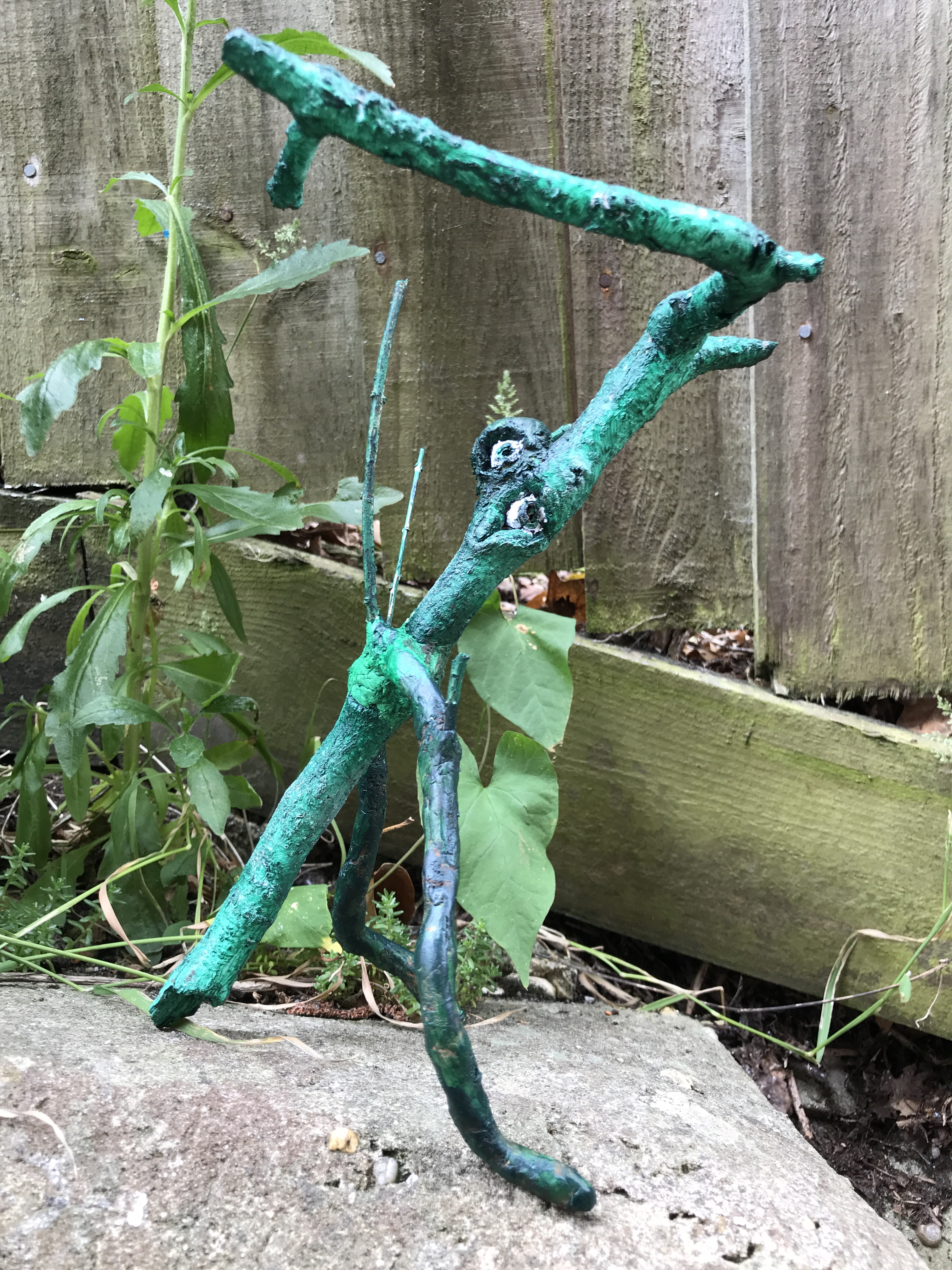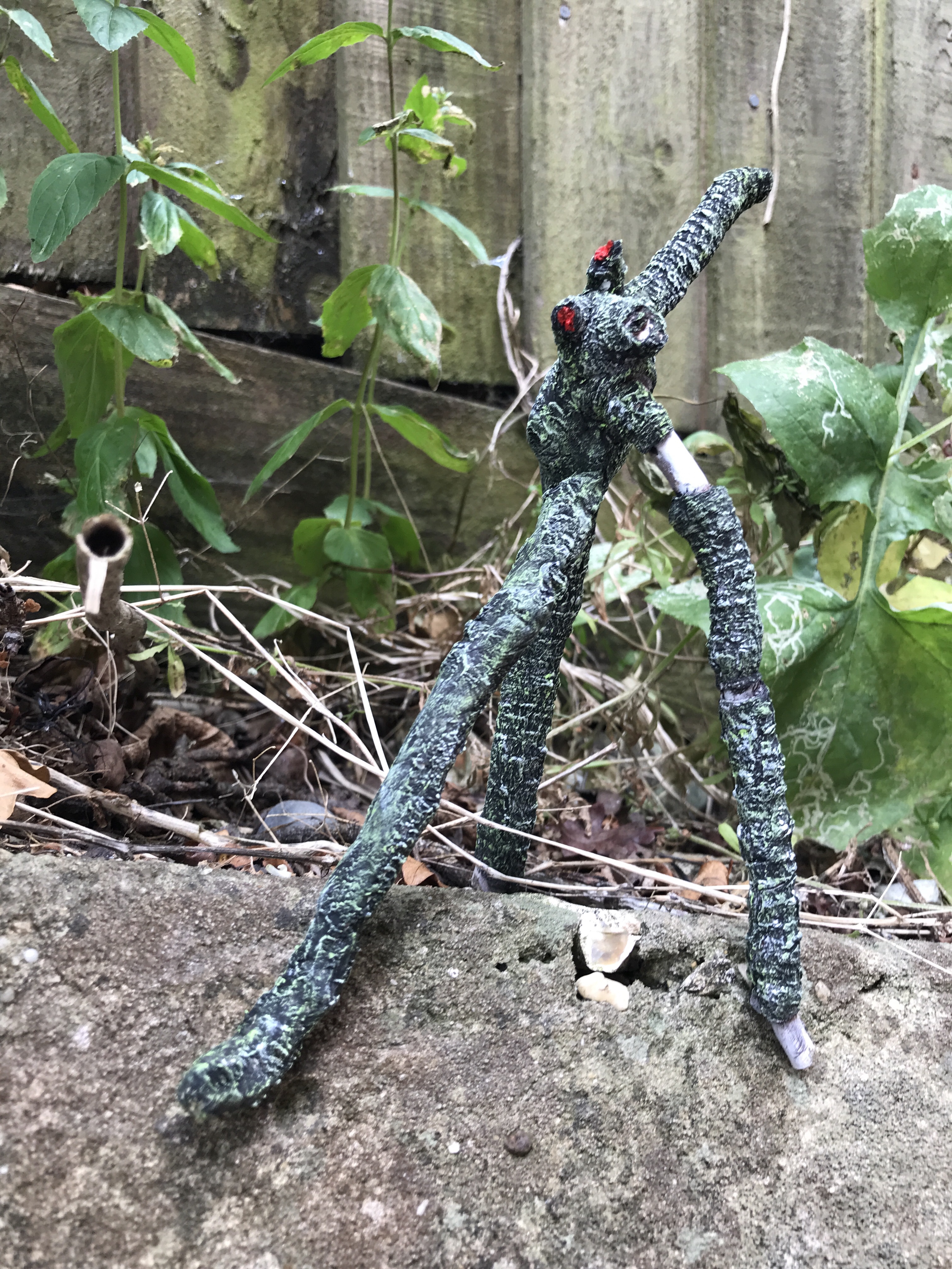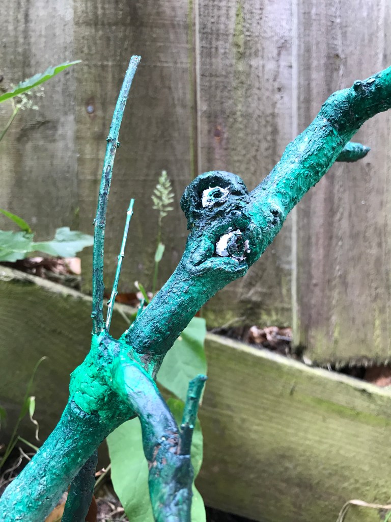 Inspired by both the wonderful, tortured, awe-inspiring, apocalytic artist Bessie Harvey and my recent reintroduction to the sometimes profound, somewhat inane, but always diabolically interesting artwork of Noel Fielding, I decided to make some little tree spirit creatures from bits of wood collected from my lockdown walks.
