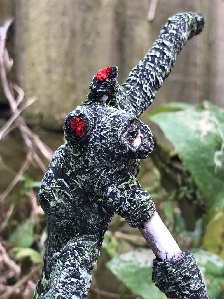 As well as the sticks that form the body of each creature, I also used milliput to add details and appendages. I have never managed to use milliput effectively and I’ve always found it hard not to create a horrible crusty texture, but I thought that it would be an advantage in this case. My milliput is also quite old now, so I had to slice off the crusty outer edge of the stuff.
