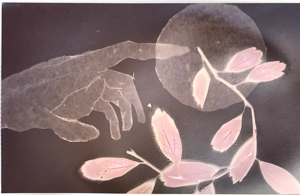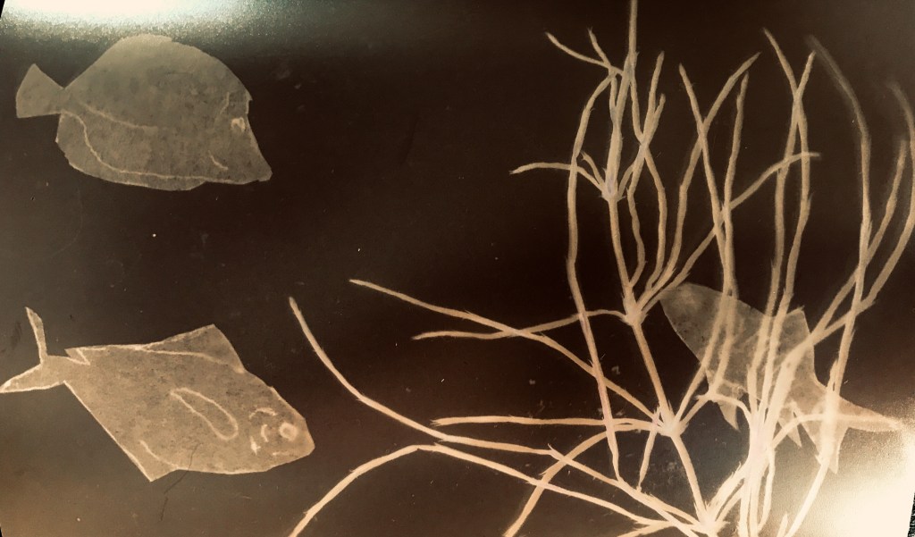 Essentially you just arrange items on top of darkroom photo paper, leave them out in the sun for a bit, and then you’ve got a lovely print.
