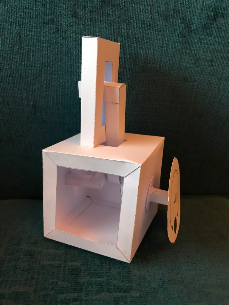 Here are some more karakuri card models I have made from the designs in a book called Karakuri: How to Make Mechanical Models that Move. Just assembling these things is a fascinating lesson in basic engineering. My first models can be seen in my post Karakuri, and one adaptation (which isn’t great) in Hatchling. I am still working on making some of the others into fun little stories.