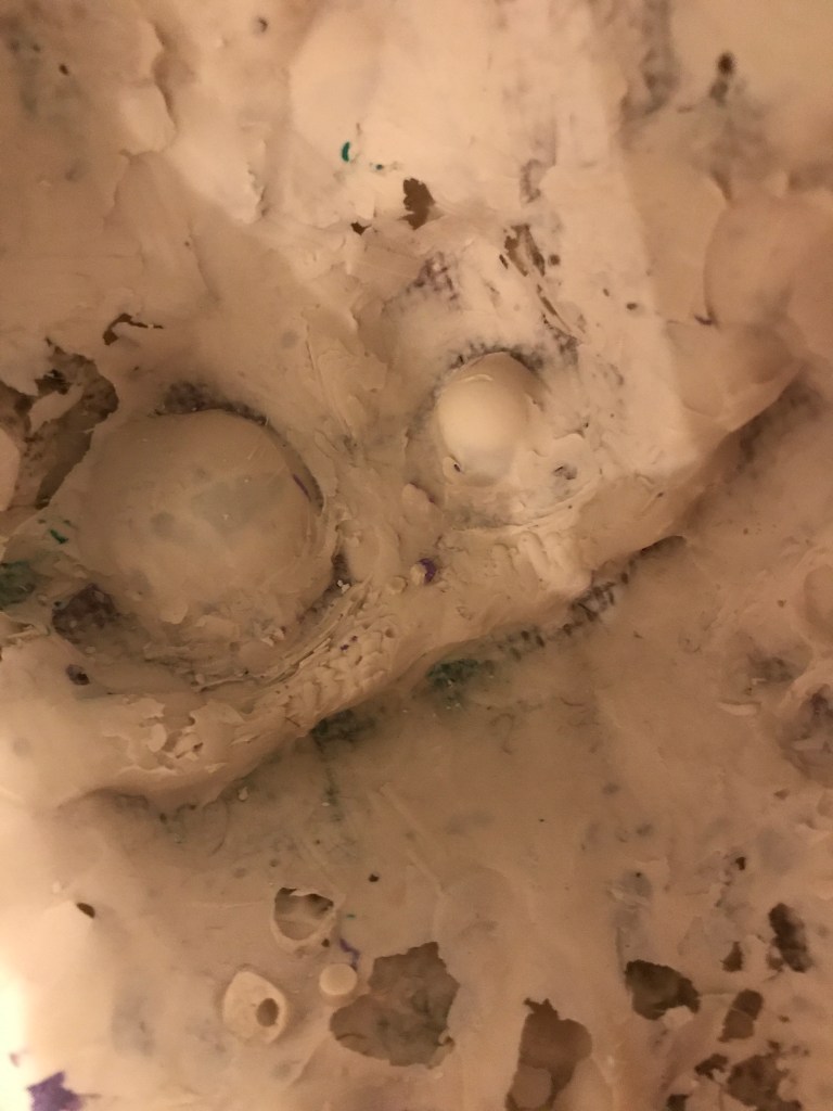 Here’s the next stage of Project Hobgoblinoid, a latex puppet creature thing. Having sculpted the head in the previous post, here is the mould. Made by drizzling plaster on the sculpt and then building up layers of thicker plaster over a scrim layer, it wasn’t really a success. I think the plaster under the scrim was too thin and I suspect some of the detail has been lost. But maybe that will help enhance the gnarly look I’m going for.