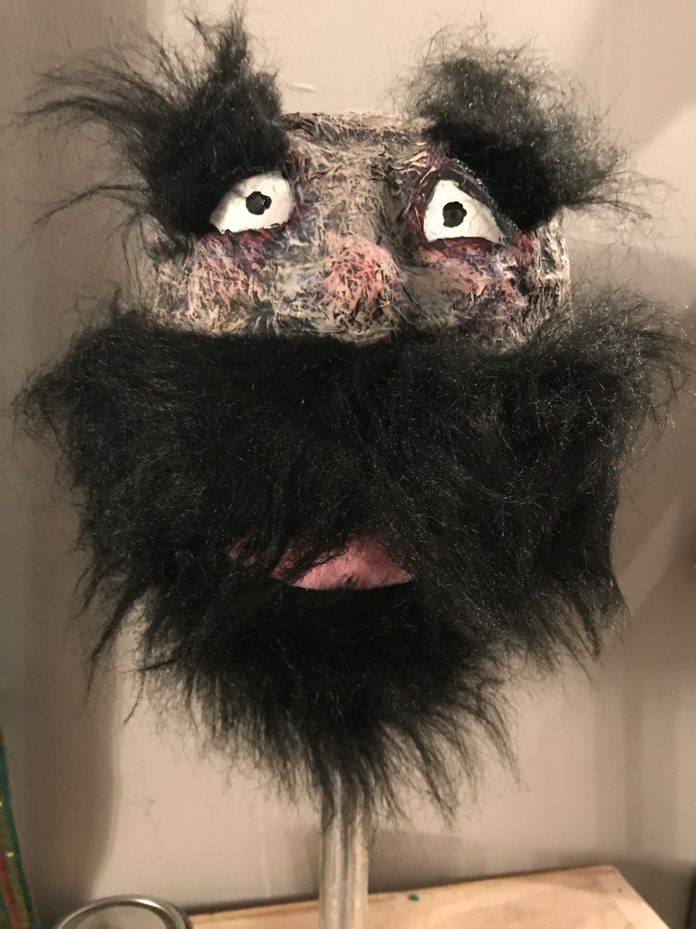 My pirate puppet is coming along quite nicely. I’ve now painted him and given him a beard, eyebrows and pupils. Now I’ve got to figure out how on earth to make a body, and then Captain Knut can start roaming the wild seas.