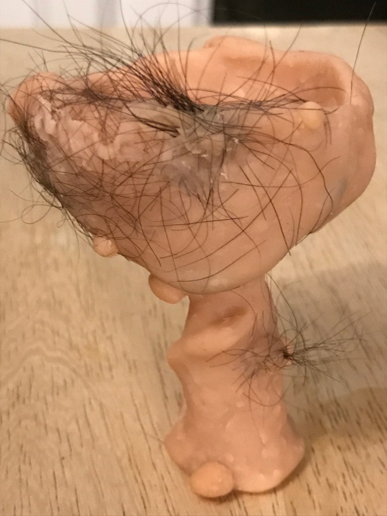 I thought it was interesting how grotesque we can find flesh and hair, and felt that combining some of these textures with a normal object would be quite interesting, especially something associated with food and eating, to try and just look at the feelings we have around the body and biological processes, and (because it’s the fun bit) hopefully heighten the potential repugnance.