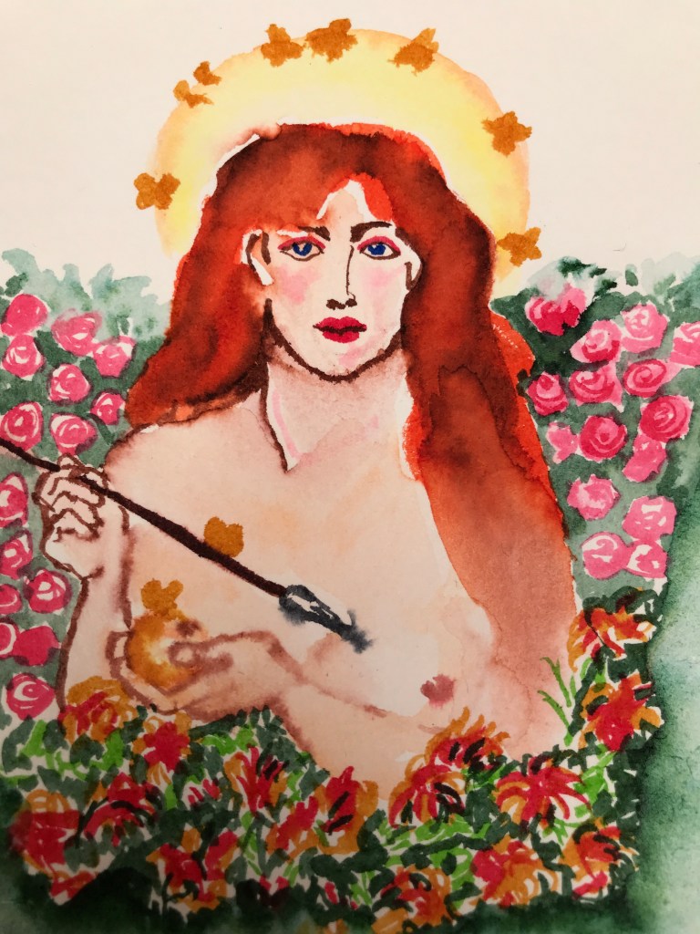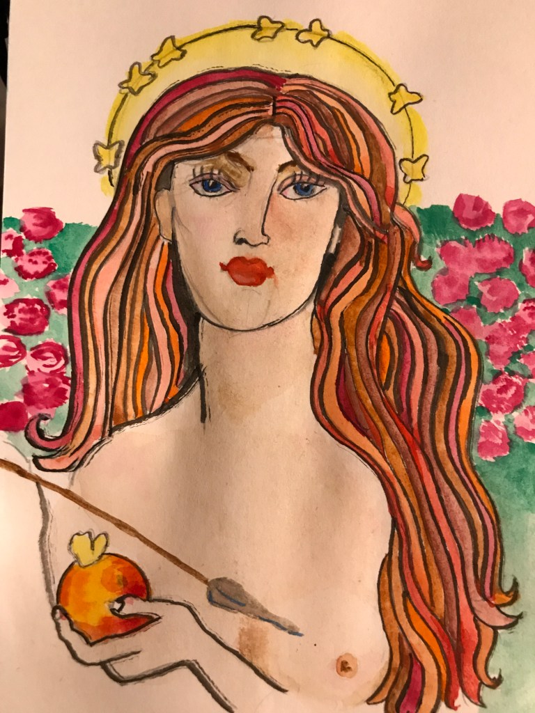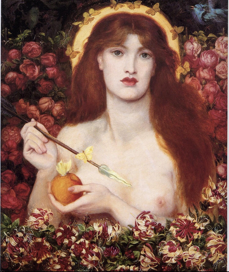 The painting I have chosen is Rosetti’s Venus Verticordia, depicting the Roman goddess of love as a beautiful, dangerous, slightly androgynous, inscrutable, exotic and erotic larger than life woman.