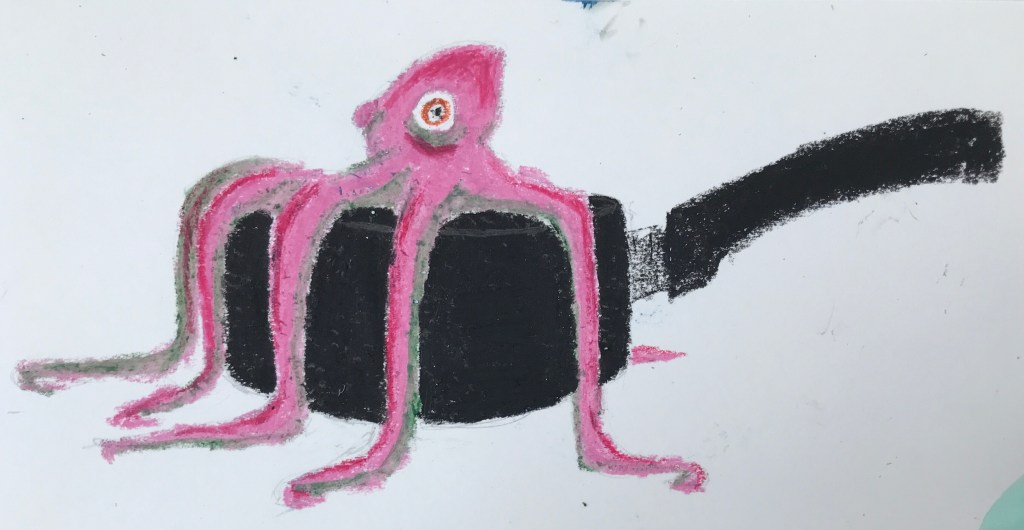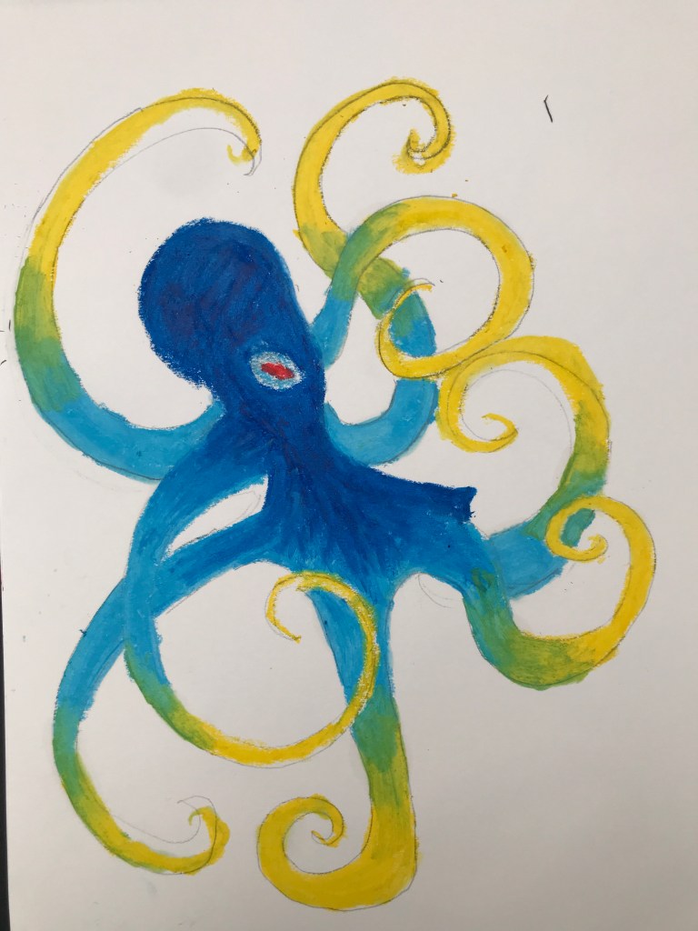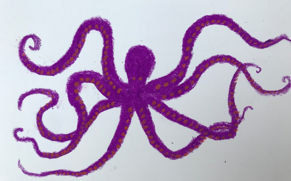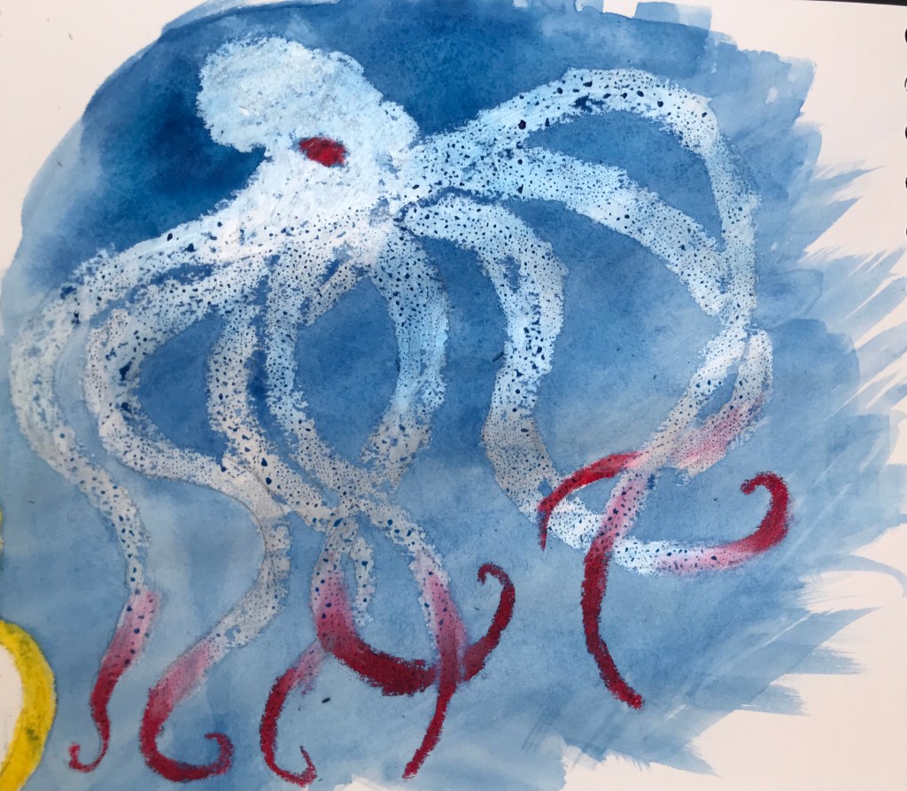 This is another task set by the Domestika course I’m currently doing, to play with various different oil pastel techniques. The theme I have chosen for this is Octopusses.