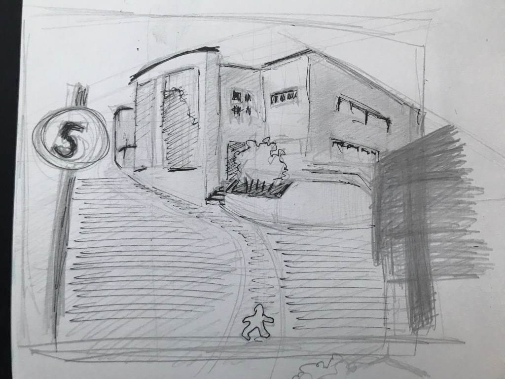 There’s a vague hint of Cronenberg about the whole setting. There are pylons behind this building in real life, which I may reintroduce if I go for this picture to develop.
