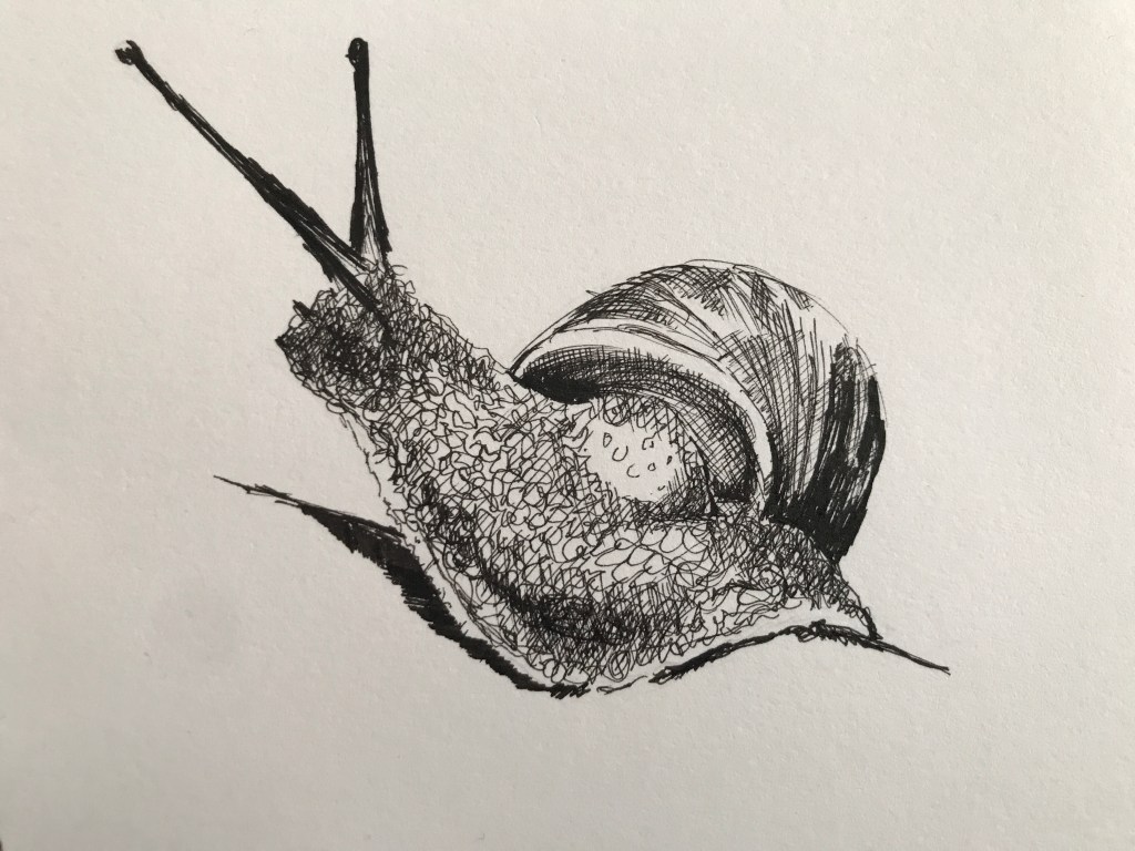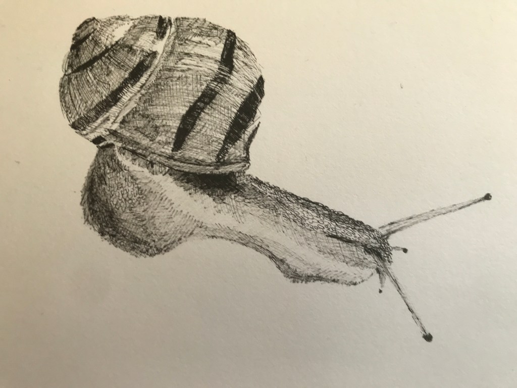 This is the official snail exercise for my Surrealistic Sketching course I’m doing online. (The unofficial snail picture was, ironically, me racing ahead of myself).