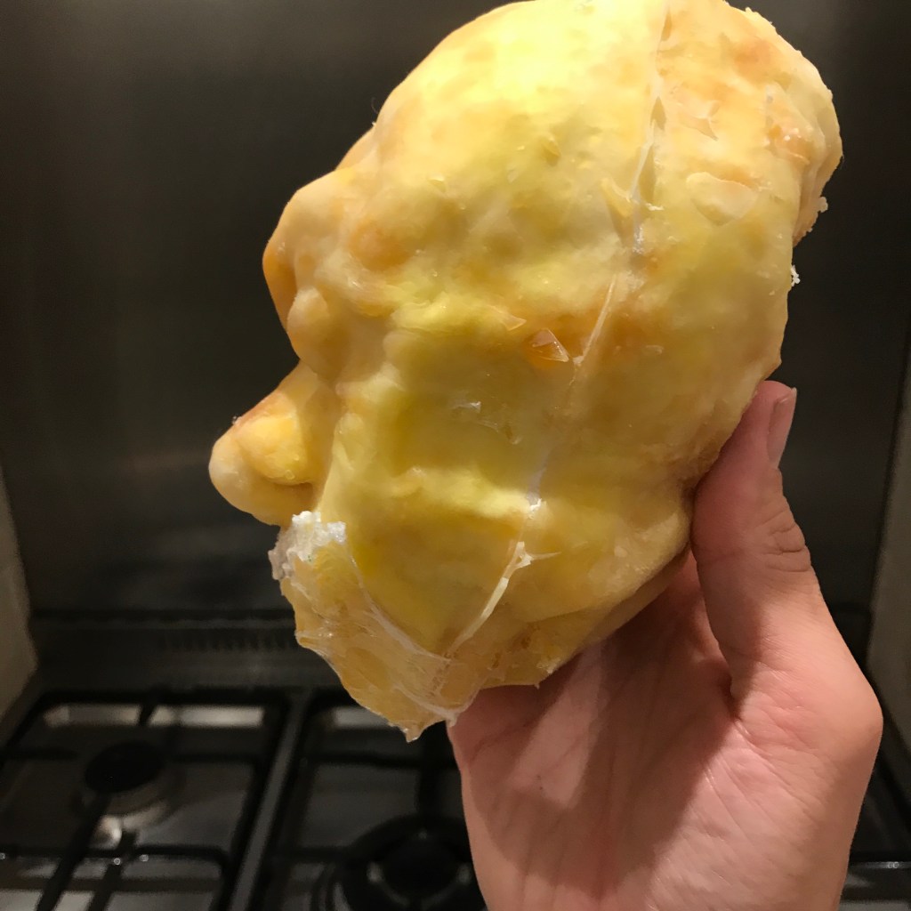 It sort of worked, but the head really doesn’t look or feel realistic in any sense. I also tried melting cellophane onto it to create texture but that looks rubbish. Maybe painted up it might, but my painting skills are not up to the job of rescuing this one, so you can mark this project as a failure.