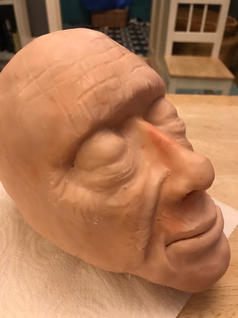 The next stage of my Celtic shrunken head for my Museum of the Macabre. he now has eyes. Much more refinement is required but I feel I am getting close.
