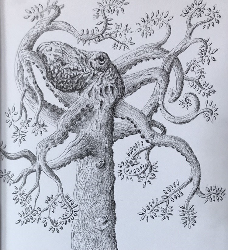 So here is my octopus tree. I hope it is suitably weird. Between this image; Pigs May Fly; and Major Ursa, I’m pretty pleased with how far I have come. Especially if you hear in mind that my first attempts really at Illustration on this blog were these, which aren’t great (although I still like the concept).