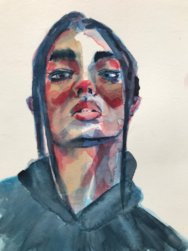 The third (and for now final) watercolour portrait I’ve been working on. I like the attitude but I think I’ve either overworked it or underworked it, I’m just not sure anymore.