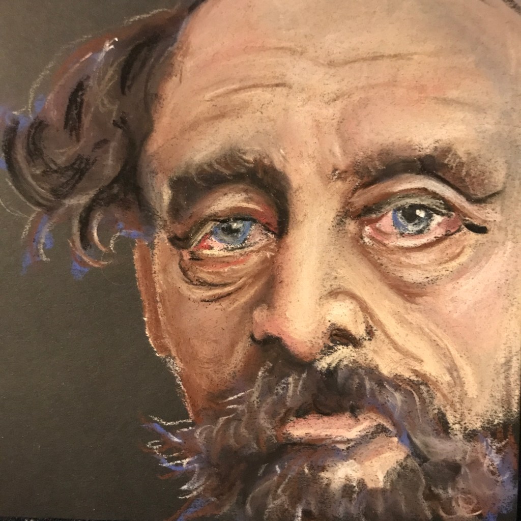 Here’s another pastel on black portrait, this time an attempt at Charles Dickens, as he’s on my mind from other projects and of course because of Christmas.