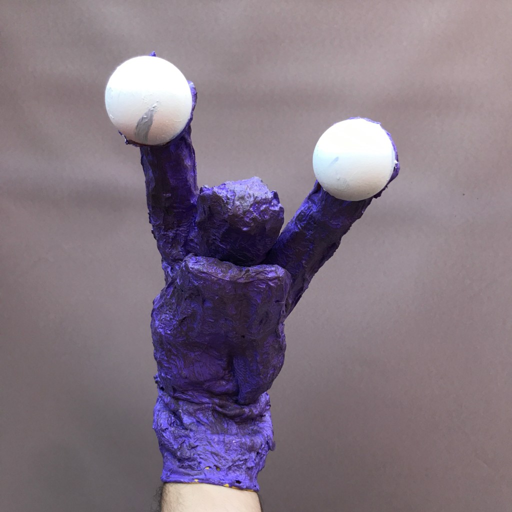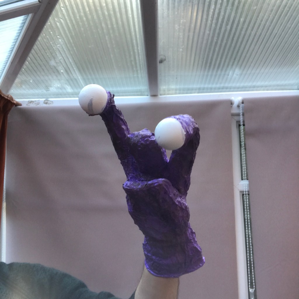 The latex has shrunk the glove so it’s got a bit tough to squeeze my hand in, not sure what I could have done to avoid that. The glove allows fingers to control the mouth and the eye stalks.