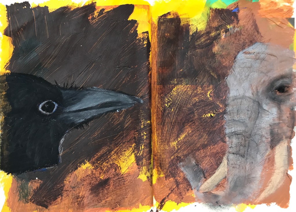 These are the next few images of my illustrated story The Festival of Animals. The Festival is underway, and our main character, a man slightly adrift in fatherhood, chooses which masks to wear for the festivities.