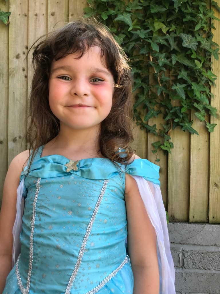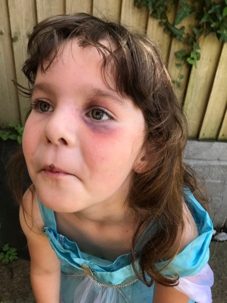 My daughter, who is five, is very patient with my projects and was happy to be my model. I definitely never expected to say that I gave my daughter a black eye.