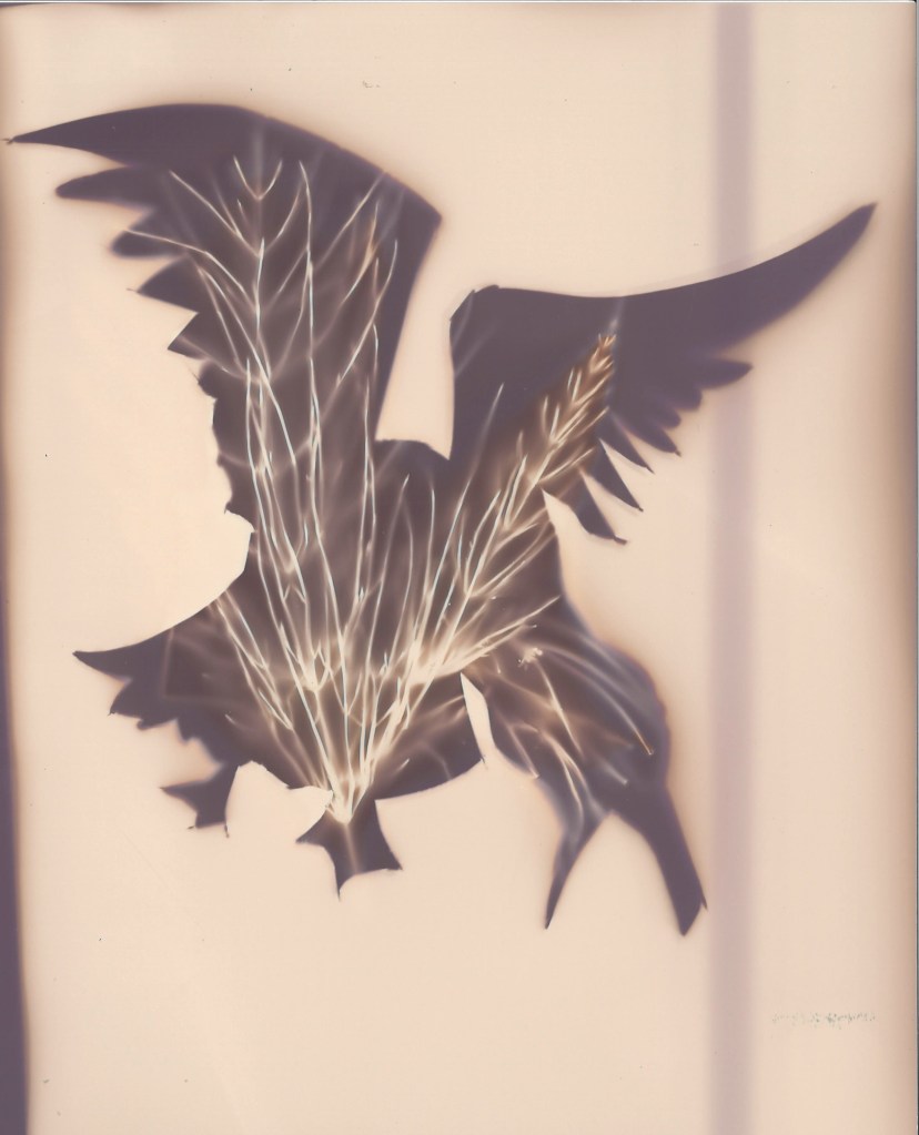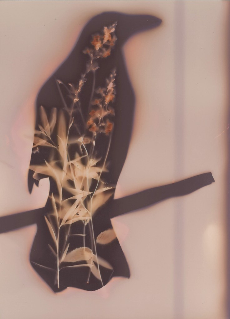 Here are the final five images that comprise my Lumen Songs project, illustrating creatures from nature with the lumen printing technique. I wasn’t entirely happy with my original crows, so the crow image is new, the others were all featured in previous posts.