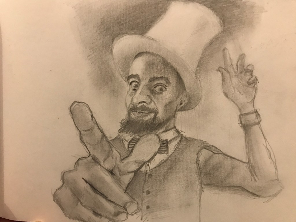 I can’t really fix a story in my head, so for now this is just an image of the Mad Hatter telling a new story about another of Alice’s adventures. It’s just pencil, I guess just as a warmup exercise for the whole project. I’m not sure what medium I want to use going forward.