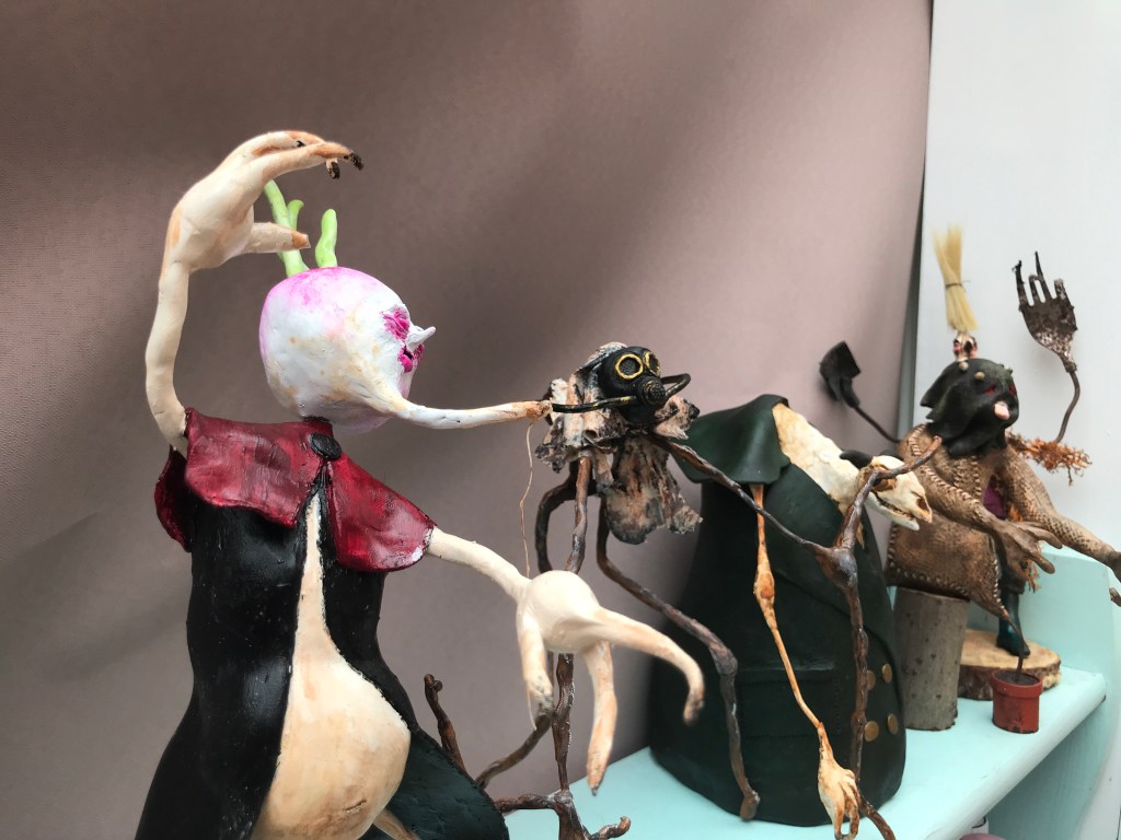 Nothing new here, just the assembled gang of scarecrows I made over the last few weeks out of polymer clay (they ended up being a mix of super sculpey and fimo depending on what scraps I had hanging around).