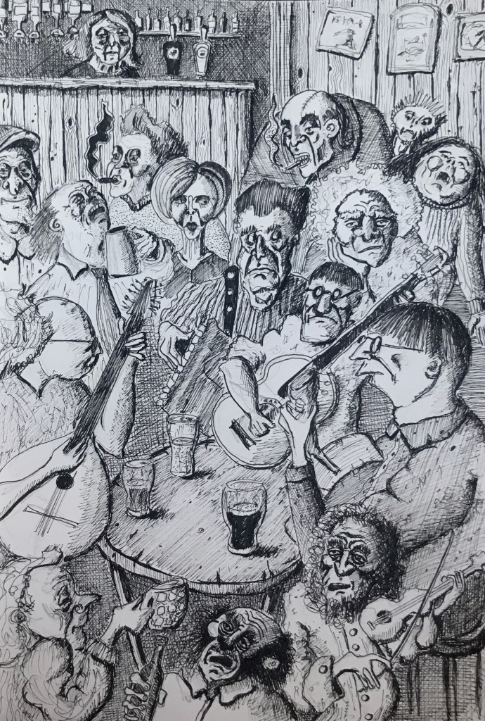 August 30, 2023 A Mighty Craic A picture celebrating the joys of an Irish session. Not a success, I would say, but was a fun one to draw. Share this: Click to share on X (Opens in new window) X Click to share on Facebook (Opens in new window) Facebook Like Loading... Related